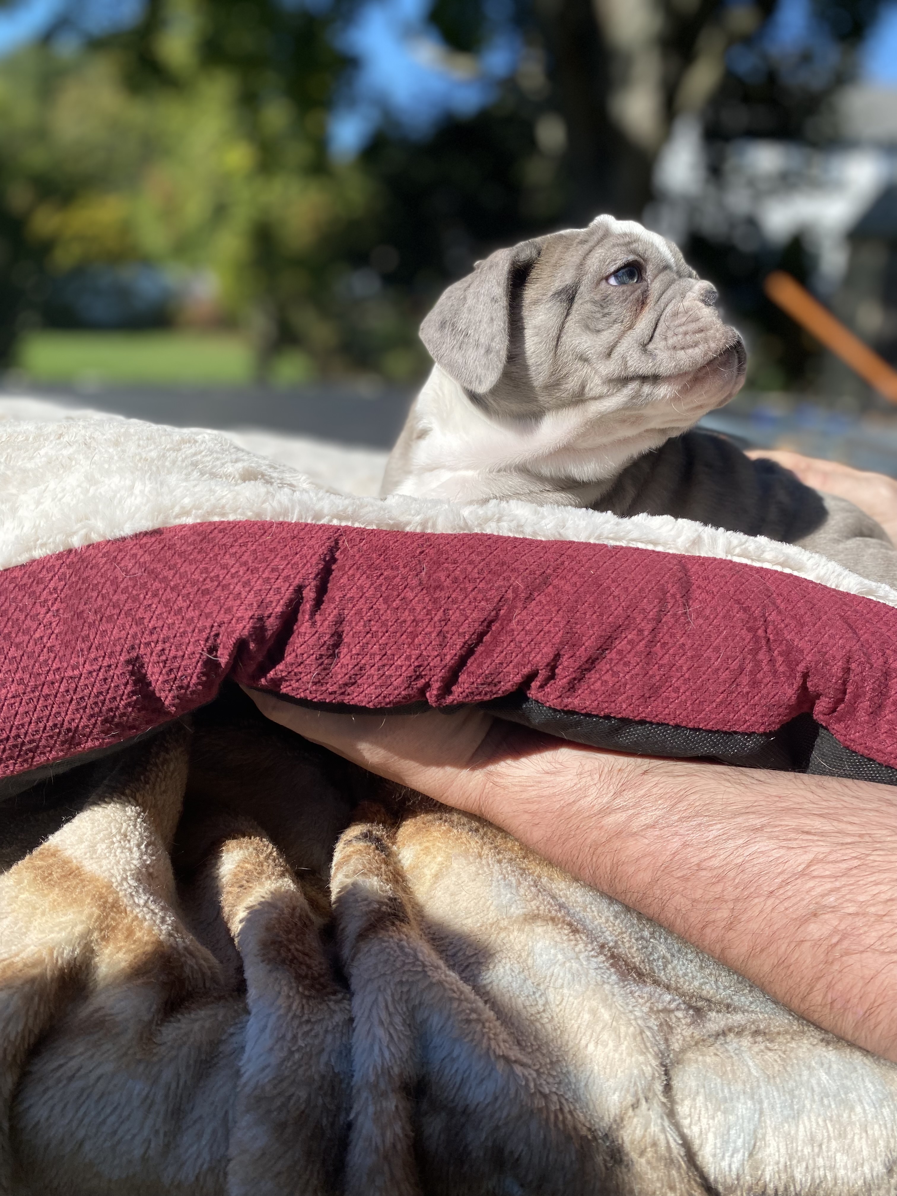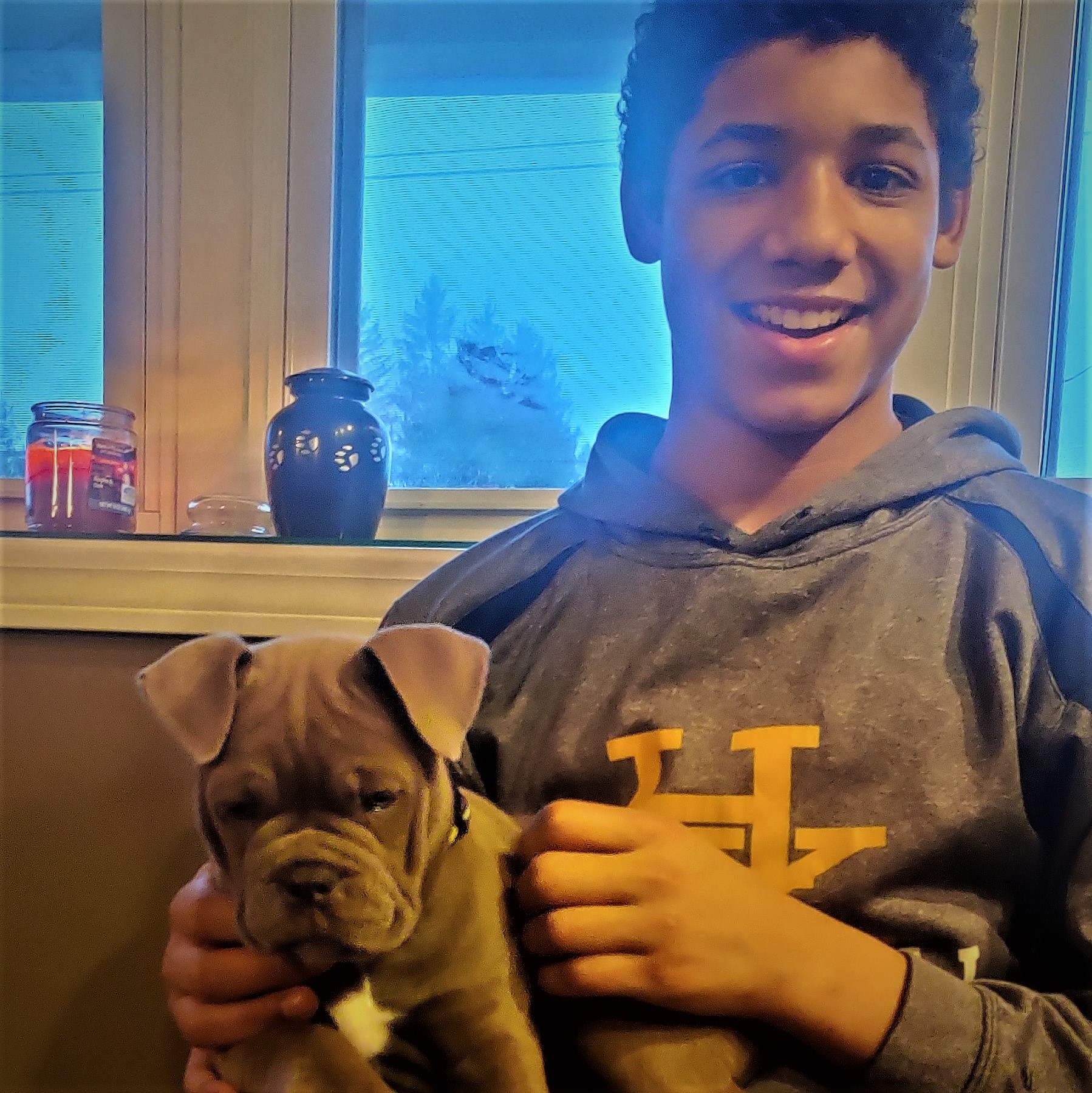 Blue Male Merle with red highlights. Solid pup with a very boxy head, definitely a stunner