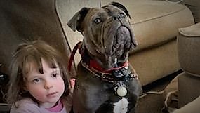 Blonde female merle and biggest Female in litter. Just about as big as Hercules. Boxy head and well proportioned frame.