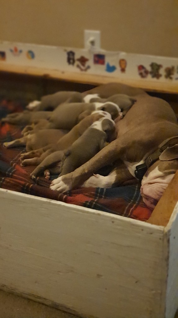 Hello this is my buddy Ice. If he’s not watching me mess around on my phone you’ll find him exploring in the yard . Ice is ready for his second date with Harley this November 2023! If you would like one of their puppies email us and hold your pick in line, don’t hesitate because it’s first come first serve! Here are some pictures of their last litter